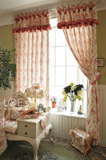 長期供應 路易雪萊 飛羽花田紅B1掛鉤款窗簾 |