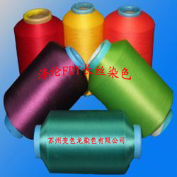蘇州變色龍染色有限公司專業是以化纖為主的筒子染色。主要品種有滌綸低彈(DTY)、滌綸超細旦和滌綸長絲(FDY)色絲、PTT記憶性纖維,錦綸低彈和錦綸長絲(FDY)等色絲,規格為20D—600D,產品廣泛應用于各種色織、針織面料和商標、織帶、領帶等行業。