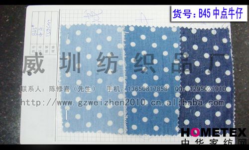 織物組織:平紋 幅寬:150cm 品名:純棉牛仔 密度:64*47 水洗工藝:砂洗 貨號:B45中點牛仔 重量:* 具體用途:襯衫、休閑服、工作服、褲裝、時裝 別名:B45中點 印染工藝:染色 成分及含量:100%棉 主要用途:服裝用布 ============================================================= 以上產品全部現貨供應,可隨時提供樣布卡和現貨,隨時發貨。所有產品全部是廠家直銷價,我們承諾:以超低利潤營銷,我們只求銷售量。為保證您的利益,我司建議您在采購前先確認我們的品質樣與顏色樣后再拿大貨,期待與您的真誠合作。因產品種類較多,具體參考未盡詳盡,如有需要,請您與我們聯系。 瑞豐紡織(中大旗艦店)坐落于國內最大的紡織面料產業中心—廣州中大,是一家專業銷售面料的廠家直銷商。主要經營產品有:全棉凈色、仿記憶絲面料、全棉(TC)色織等,面料品種花達上千余種,所有產品全部現貨經營。 我們面料的品質來源于:1、采用國內外優質的原材料;2、使用精良的生產工藝和設備;3、完善的生產質量管理體系。我們具有開發和創新品種的強烈意識和優越條件,并根據客戶需求與市場變化時時推出潮流面料。憑著多年的專業行業經驗,根據客戶需求,不論客戶在全國任何地方,只要提供小樣,就可在一兩天時間內輕松獲得所需面料的信息。 批發說明供應商支持混批 。 ============================================================= 有意請加QQ:1295021910或電話聯系。 公司名稱:威圳紡織品廠 聯系人:陳修喜先生 手機:13650817858 網址:http://www.gzweizhen2010.cn.alibaba.com =============================================================